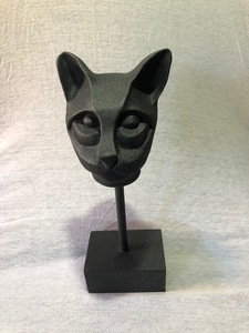 2022Met zwart zand behandelde kattekop van keramiek op een zwarte sokkel